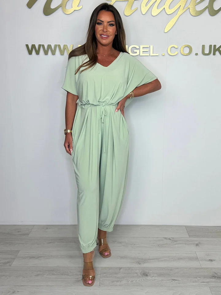2025 Bawełniany kombinezon z dekoltem w serek i wiązaniem