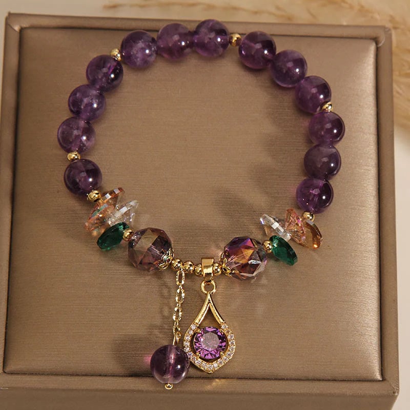 Together, these authentic amethyst beads and complementary crystals create a positive energy bracelet that supports emotional healing while enhancing your spiritual awareness.