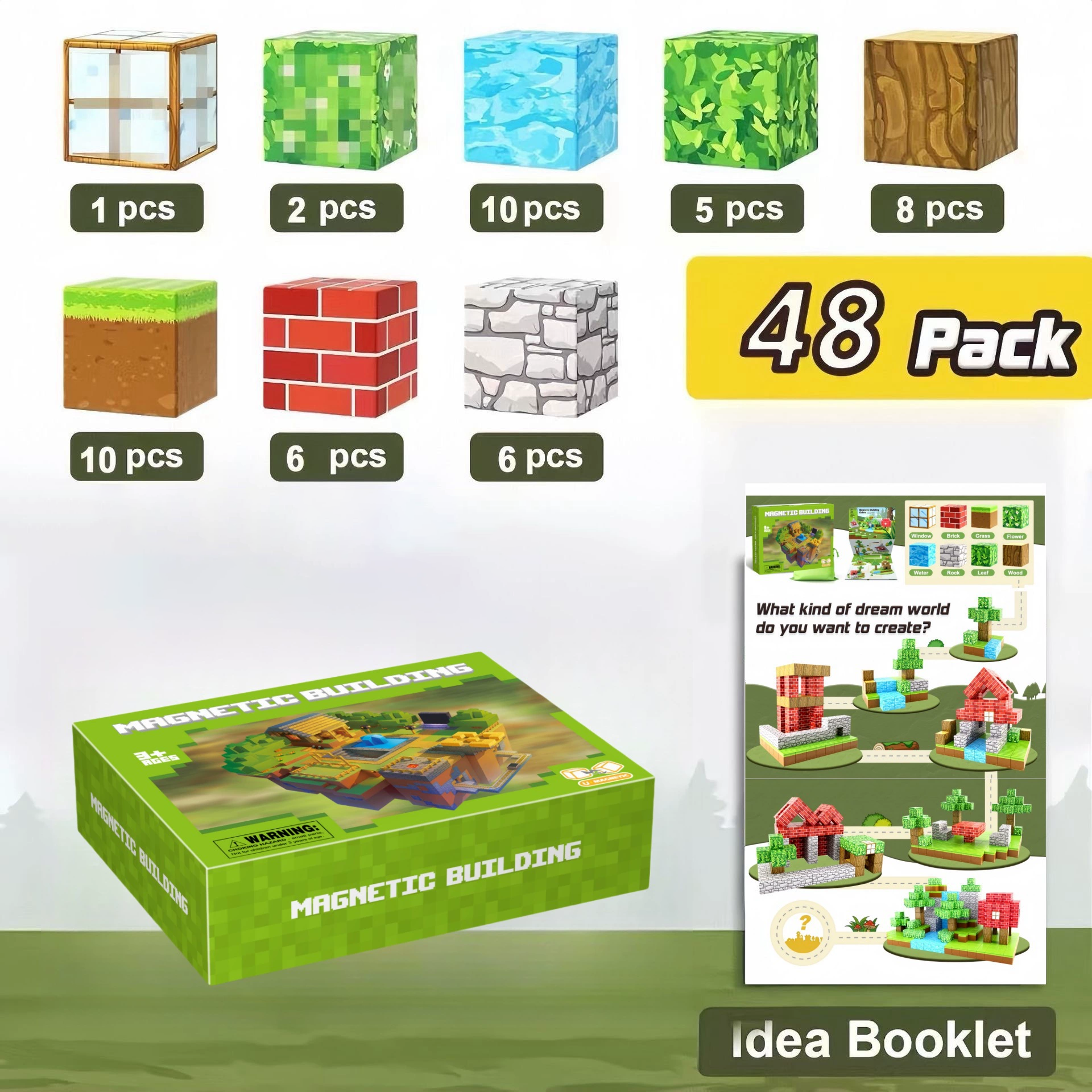 - Połącz klocki magnetyczne, podążając za swoimi pomysłami lub odtwarzając ulubione sceny z Minecrafta.
