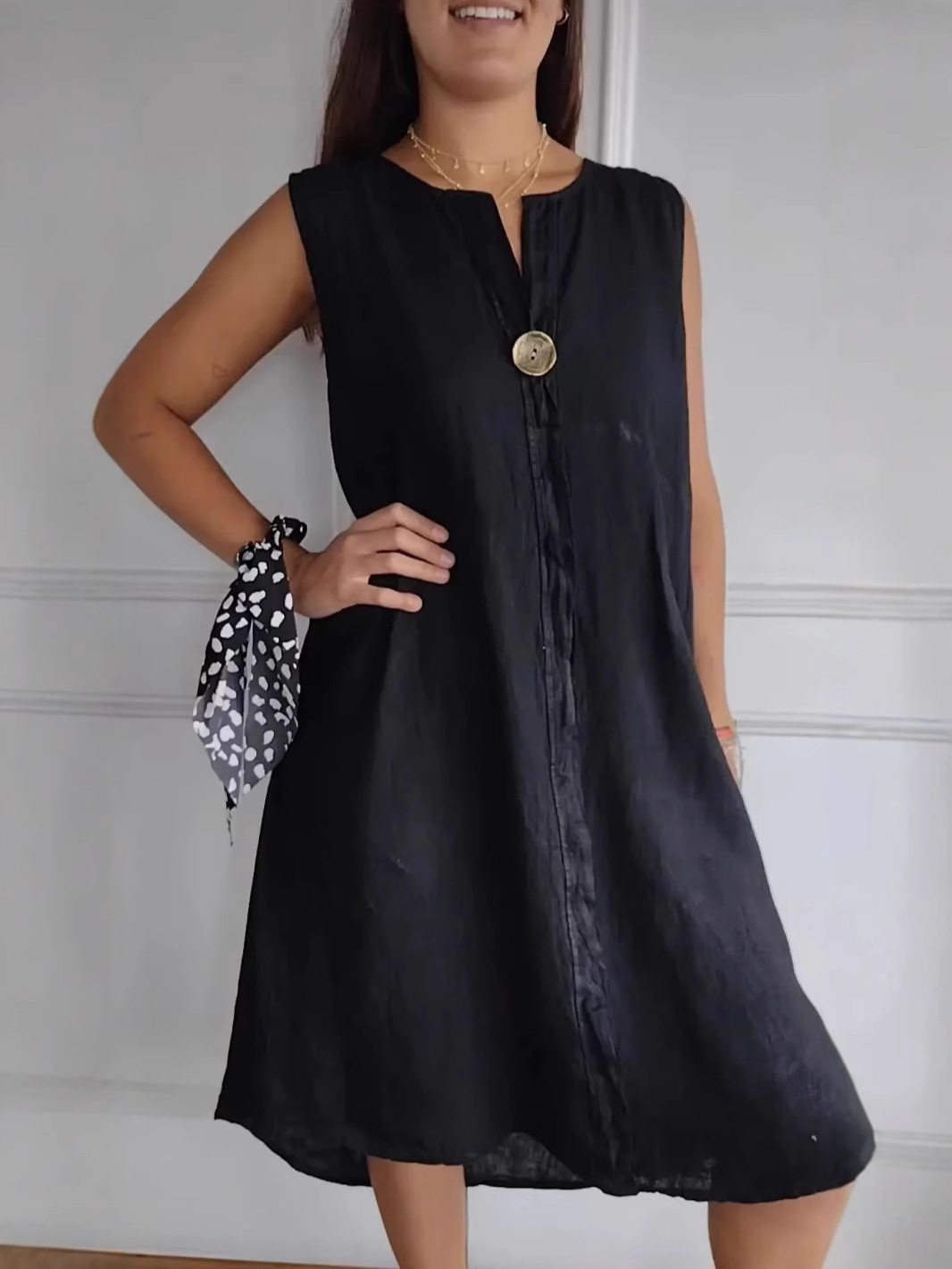 Opakowanie zawiera 1*V bawełnianą lnianą sukienkę bez rękawów