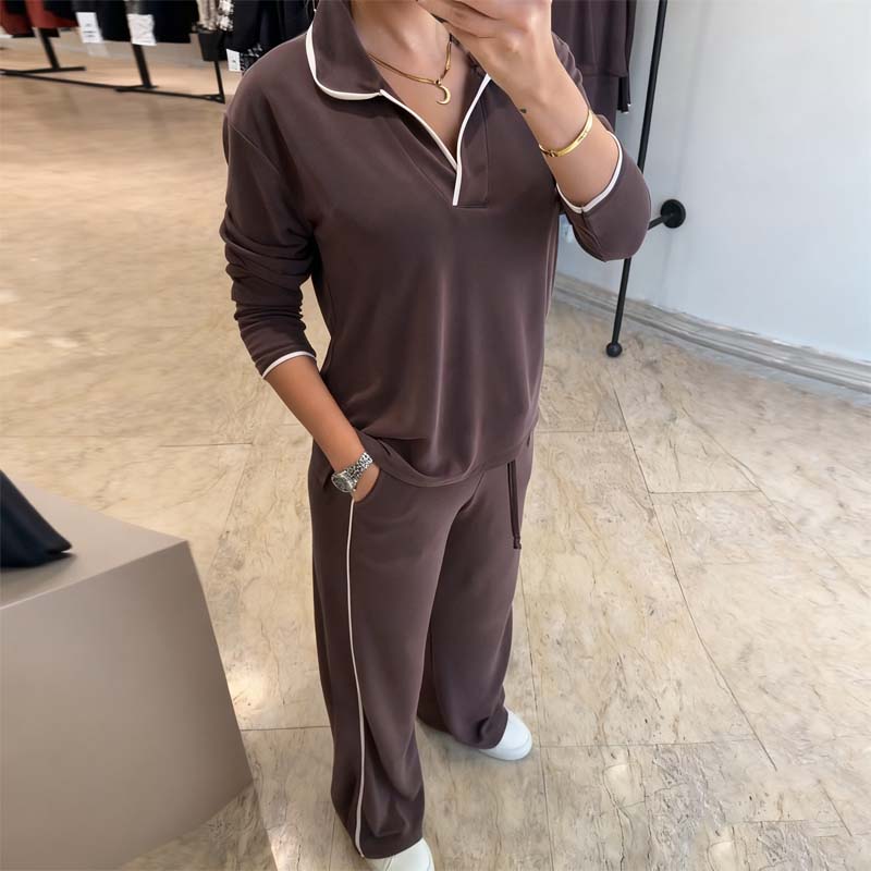 WSZECHSTRONNY ZESTAW DWUCZĘŚCIOWY – Ten pasujący strój łączy w sobie swobodny top z dekoltem w serek i szerokie spodnie, zaprojektowany tak, aby stworzyć wyrafinowany, a jednocześnie swobodny, codzienny look na różne okazje.